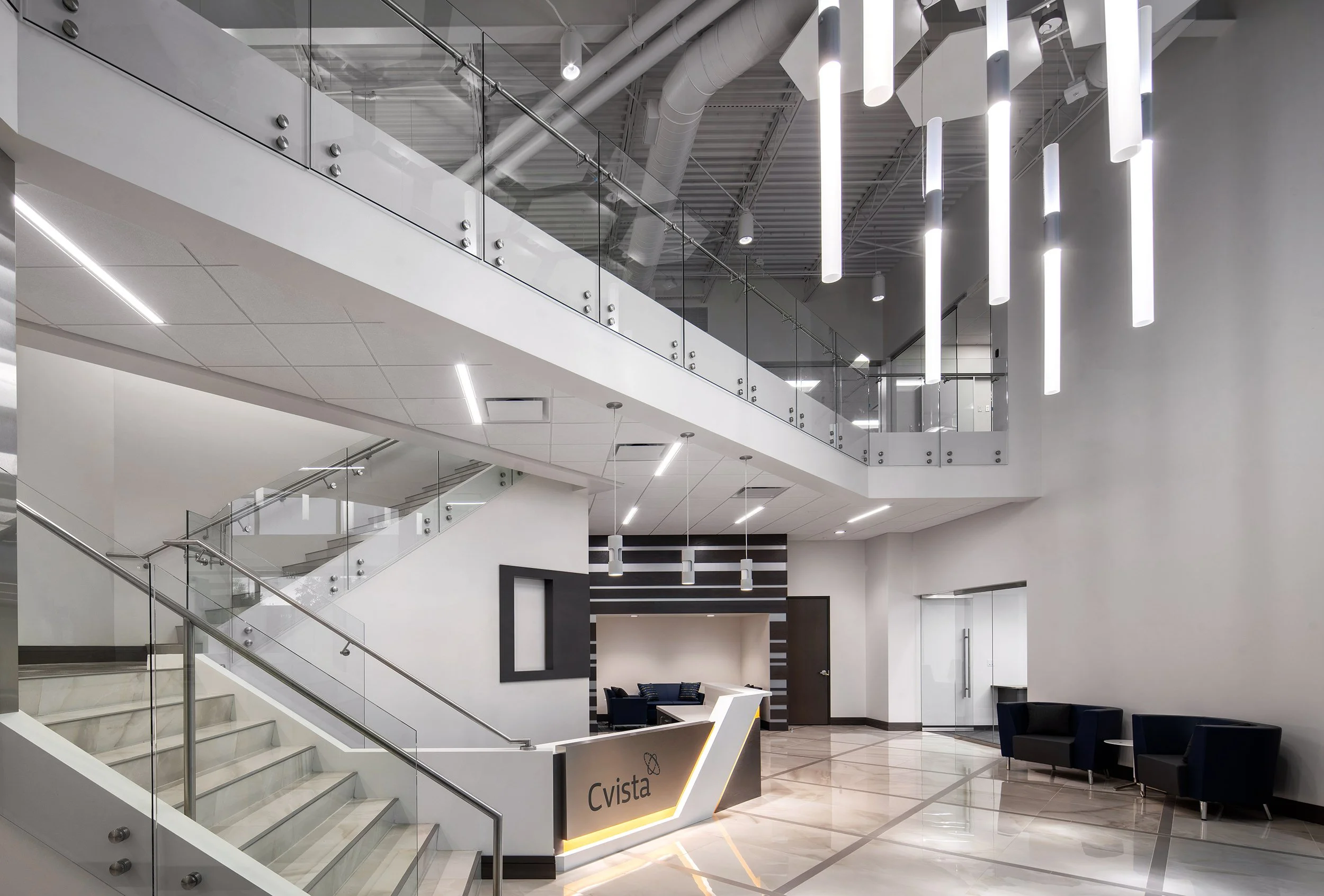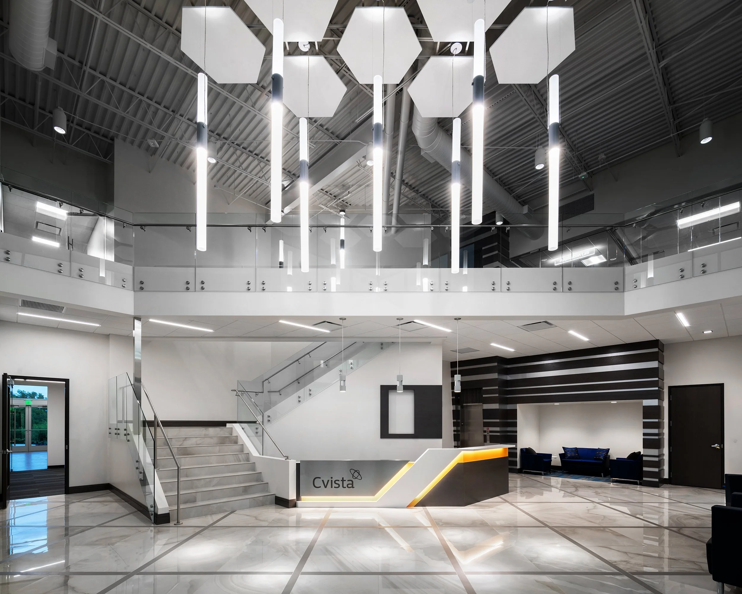Cvista: This corporate headquarters is located on 14 acres in Riverview, Florida. Cvista is a leading global manufacturer & supplier of innovative flavor ingredients. The design scope included a new 18,000 SF 2-story ground up commercial office building, executive department wing, conference rooms, break room, open office areas, systems furniture design & break out rooms.